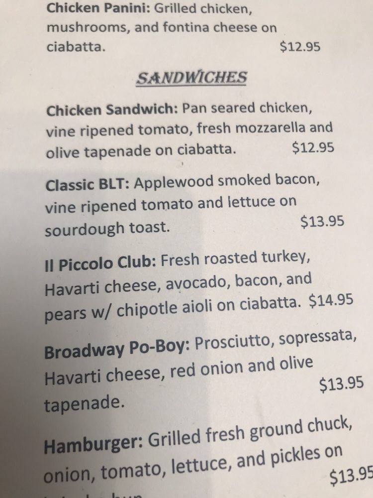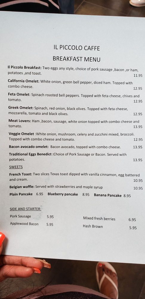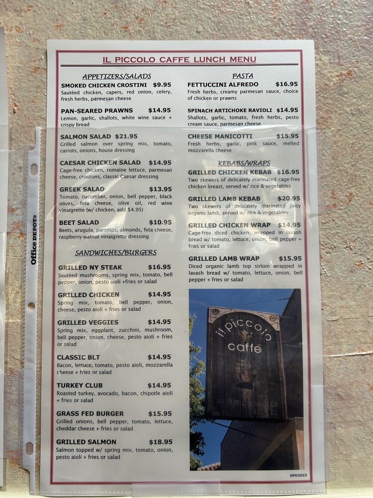Customer reviews echo this café's charm; while the prices may feel high, the attentive service and delectable dishes make each visit worthwhile. Whether you're dining in or grabbing takeout, il Piccolo Caffe promises a welcoming experience that delights both locals and visitors alike.